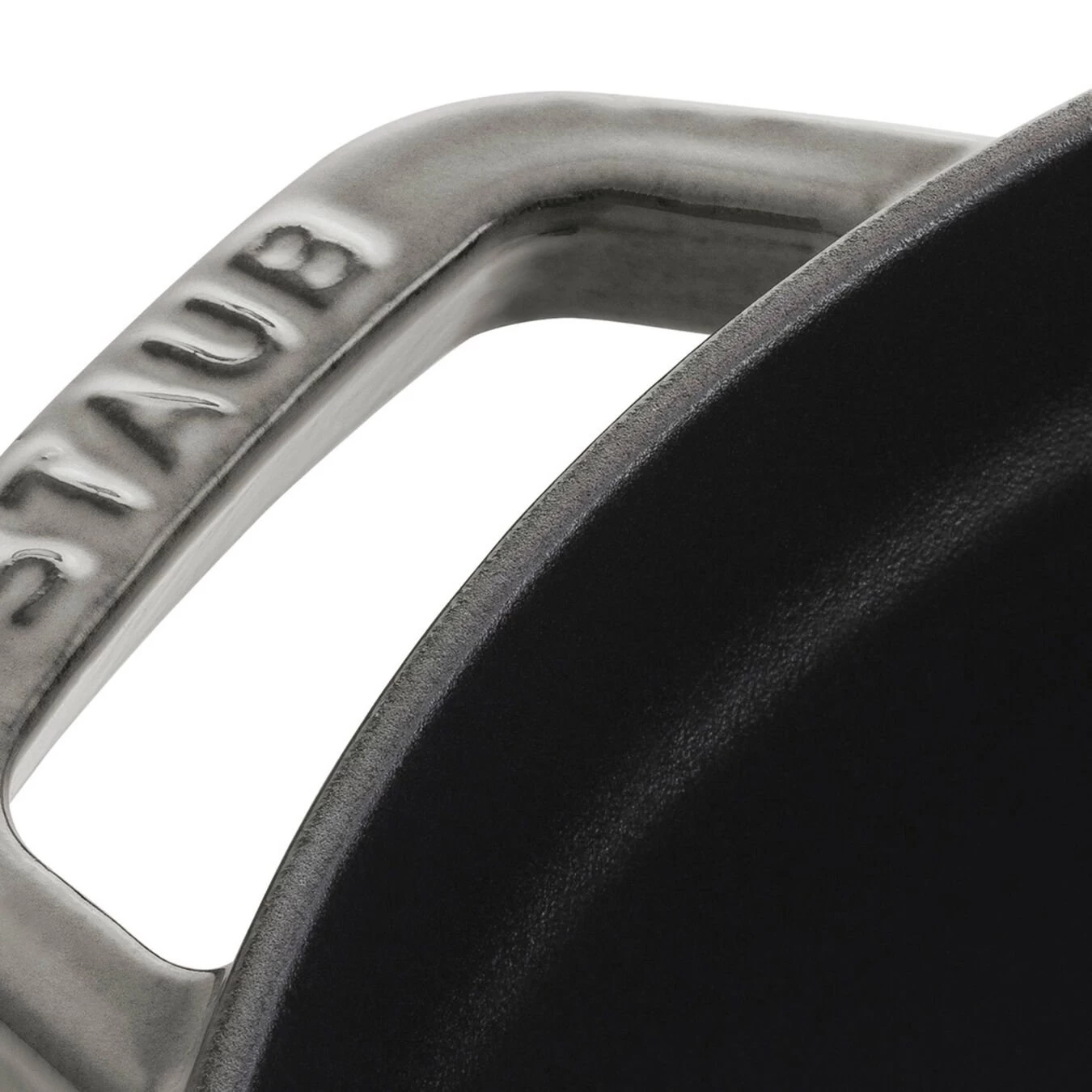 L’intérieur de cette cocotte est émaillé noir mat, la marque de fabrique STAUB. Cet émail de qualité supérieure permet d’obtenir une meilleure résistance aux rayures et facilite l’entretien. Il possède les propriétés idéales pour saisir, rôtir et caraméliser les aliments.