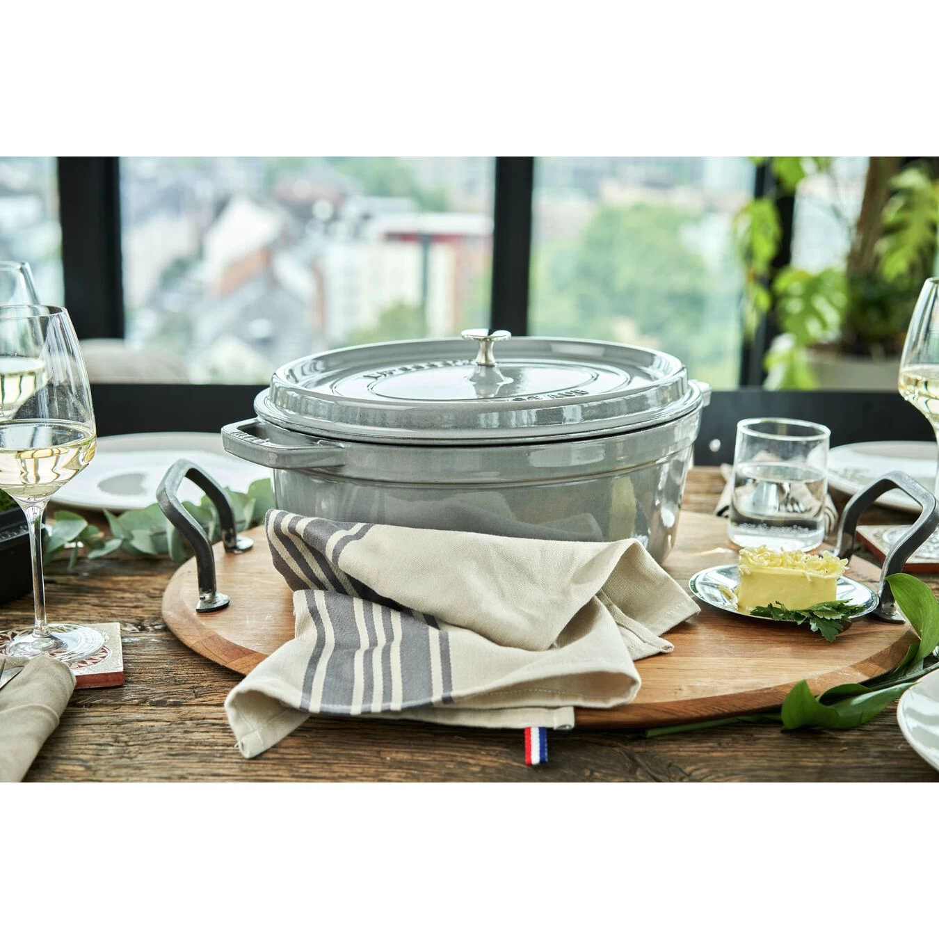 Cette cocotte ovale en fonte émaillée STAUB Gris graphite de 37 cm, est idéale pour 7 à 8 personnes, pour préparer des plats mijotés, des rôtis, de la volaille et même du pain ! Compatible tous feux et four, elle peut également s’utiliser sur induction. Véritable savoir-faire authentique de création française, cette cocotte est une pièce unique, issue d’un processus de fabrication traditionnel. Avec son design élaboré et son poids optimisé, son couvercle plat au contour marqué présente d’excellentes propriétés de rétention de l’humidité et assure grâce à ses picots®, un arrosage homogène, une pluie d’arômes, pour des plats qui mijotent longtemps. L’intérieur de cette cocotte est émaillé noir mat, la marque de fabrique STAUB. Cet émail de qualité supérieure permet d’obtenir une meilleure résistance aux rayures et facilite l’entretien. Il possède les propriétés idéales pour saisir, rôtir et caraméliser les aliments. Née en Alsace, la cocotte STAUB a su traverser le temps et les frontières. Préférée aussi bien par les amateurs que les grands chefs, elle passe aisément de la cuisine à la table. Quel que soit le plat que vous concoctez, avec la Cocotte STAUB vous avez l’assurance de conserver toute l’intensité et les saveurs, la viande restera tendre et les légumes moelleux. Composée de fonte, un alliage de fer riche en carbone, un des matériaux qui retiennent le mieux la chaleur, la diffuse lentement et la redistribue de manière parfaitement homogène. Une fois la fonte suffisamment chaude, ses propriétés de rétention de la chaleur permettent de réduire le feu au minimum, afin de laisser mijoter doucement les plats. La fonte conserve également le froid : la cocotte à température ambiante peut être placée au réfrigérateur avant de servir afin de rester froide une fois à table.