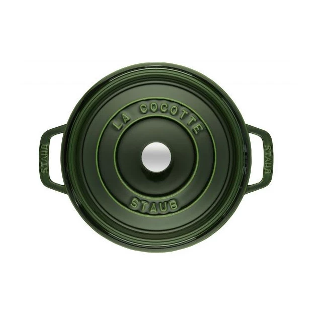 D’un beau Vert Basilic cette cocotte en fonte Staub viendra apporter de la couleur et vitalité dans votre cuisine et au centre de votre table. Conçue en fonte de qualité supérieure, la cocotte ronde Staub s’utilise sur tous les types de feux et son couvercle surmonté d’un bouton en laiton vous permet de la mettre au four pour des plats gratinés à souhait. D’un volume de plus de 5 litres, cette cocotte en fonte est idéale pour régaler avec vos plats mijotés jusqu’à 5 convives.
