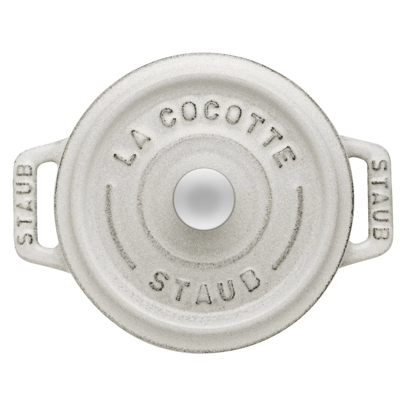 Cette Mini Cocotte ronde en fonte émaillée STAUB Truffe blanche de 10 cm est particulièrement adaptée à la préparation, la cuisson et la présentation de portions individuelles en plat, en accompagnement ou en dessert. Compatible tous feux et four, elle peut également s’utiliser sur induction. Nouvelle couleur dans les gammes STAUB, le coloris Truffe Blanche est un blanc à l’émail singulier, élégant et sophistiqué. Véritable savoir-faire authentique de création française, cette mini cocotte est une pièce unique, issue d’un processus de fabrication traditionnel. Avec son design élaboré et son poids optimisé, son couvercle plat au contour marqué présente d’excellentes propriétés de rétention de l’humidité et assure grâce à ses picots®, un arrosage homogène, une pluie d’arômes, pour des plats qui mijotent longtemps. L’intérieur de cette mini cocotte est émaillé noir mat, la marque de fabrique STAUB. Cet émail de qualité supérieure permet d’obtenir une meilleure résistance aux rayures et facilite l’entretien. Il possède les propriétés idéales pour saisir, rôtir et caraméliser les aliments. Née en Alsace, la cocotte STAUB a su traverser le temps et les frontières. Préférée aussi bien par les amateurs que les grands chefs, elle passe aisément de la cuisine à la table. Quel que soit le plat que vous concoctez, avec la Mini Cocotte STAUB vous avez l’assurance de conserver toute l’intensité et les saveurs, la viande restera tendre et les légumes moelleux. Composée de fonte, un alliage de fer riche en carbone, un des matériaux qui retiennent le mieux la chaleur, la diffuse lentement et la redistribue de manière parfaitement homogène. Une fois la fonte suffisamment chaude, ses propriétés de rétention de la chaleur permettent de réduire le feu au minimum, afin de laisser mijoter doucement les plats. La fonte conserve également le froid : la mini cocotte à température ambiante peut être placée au réfrigérateur avant de servir afin de rester froide une fois à table.